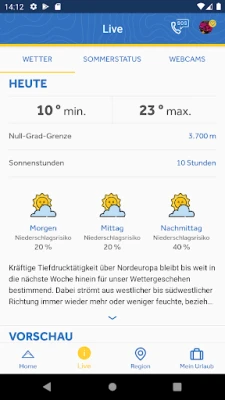 Εξερευνήστε την περιοχή με απόλυτη σιγουριά, χάρη στις ζωντανές ενημερώσεις που προσφέρει η εφαρμογή. Λάβετε πληροφορίες σε πραγματικό χρόνο για την κατάσταση των λιφτ και των εγκαταστάσεων, την προσβασιμότητα των πεζοπορικών και ποδηλατικών διαδρομών, καθώς και την πληρότητα των εστιατορίων. Παρακολουθήστε τις καιρικές συνθήκες και τις εικόνες από τις κάμερες web ζωντανά, προγραμματίζοντας έτσι τις δραστηριότητές σας με ακρίβεια. Επιπλέον, με τις εξατομικευμένες ειδοποιήσεις, θα είστε πάντα ενήμεροι για τα πιο σημαντικά νέα και γεγονότα κατά τη διάρκεια της διαμονής σας. Προετοιμάστε ακόμα και πριν την άφιξή σας το πρόγραμμά σας, σημειώνοντας αγαπημένα μέρη, εκδηλώσεις και δραστηριότητες στην προσωπική σας λίστα επιθυμιών.