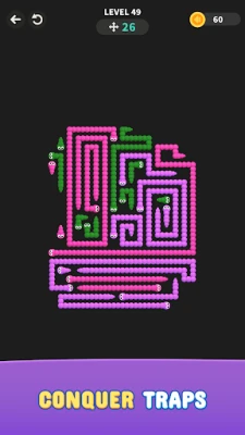 Απολαύστε μια εμπειρία παιχνιδιού που συνδυάζει την εθιστική λογική των γρίφων με την ομαλή, ικανοποιητική κίνηση των φιδιών. Τα λιτά, μινιμαλιστικά γραφικά αναδεικνύουν την καθαρότητα του λαβύρινθου και τις διαδρομές, επιτρέποντάς σας να εστιάσετε στην επίλυση. Με εκατοντάδες χειροποίητους γρίφους, το Tap Snake Jam εγγυάται ατελείωτες ώρες πνευματικής άσκησης. Η απουσία χρονομέτρων και πίεσης δημιουργεί ένα χαλαρωτικό περιβάλλον, ιδανικό για να βυθιστείτε στην επίλυση. Αν χρειαστείτε βοήθεια, διαθέσιμες υποδείξεις θα σας καθοδηγήσουν όταν ένας κόμπος φαίνεται άλυτος, εξασφαλίζοντας μια πάντα ευχάριστη διαδρομή.