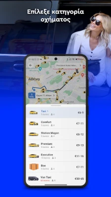 Φανταστείτε μια απρόσκοπτη εμπειρία μετακίνησης στην πόλη, όπου η άνεση συναντά την τεχνολογία. Το **taxi.gr** είναι εδώ για να μεταμορφώσει τον τρόπο που ταξιδεύετε, προσφέροντας μια σύγχρονη και αξιόπιστη λύση για κάθε σας ανάγκη. Με λίγα μόνο αγγίγματα, ορίστε εύκολα τον προορισμό σας και δείτε άμεσα την εκτιμώμενη τιμή της διαδρομής σας, καθώς και τον αναμενόμενο χρόνο άφιξης του πλησιέστερου διαθέσιμου οδηγού. Επιλέξτε την κατηγορία οχήματος που σας ταιριάζει από μια ευρεία γκάμα, είτε πρόκειται για ένα οικονομικό Taxi, ένα άνετο Comfort, ένα ευρύχωρο Station Wagon, είτε τις πολυτελείς επιλογές Premium, Executive ή Van, χωρίς κρυφές χρεώσεις για τις βασικές υπηρεσίες.