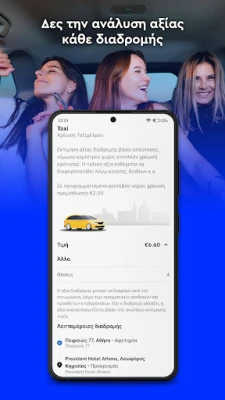 Αναβαθμίστε την εμπειρία σας με τις προηγμένες λειτουργίες του **taxi.gr**. Αποθηκεύστε τις αγαπημένες σας διευθύνσεις για ταχύτερες κρατήσεις, προγραμματίστε τις μετακινήσεις σας εκ των προτέρων, ή δημιουργήστε διαδρομές με πολλαπλές στάσεις για απόλυτη ευελιξία. Ξεκινώντας δυναμικά από την Αθήνα, η υπηρεσία μας επεκτείνεται σταδιακά και σε άλλες μεγάλες ελληνικές πόλεις και νησιά, φέρνοντας την ποιότητα και την αξιοπιστία του **taxi.gr** παντού. Η γνώμη σας είναι πολύτιμη! Βαθμολογήστε την εφαρμογή. Τα σχόλιά σας ενισχύουν το **taxi.gr** και μας βοηθούν να διατηρούμε τις υπηρεσίες και τους συνεργάτες μας σε άριστο επίπεδο, ενώ για οποιαδήποτε απορία ή βοήθεια, η ομάδα υποστήριξης του **taxi.gr** είναι διαθέσιμη 24/7 μέσω