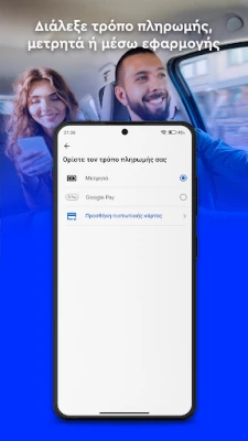 Απολαύστε πλήρη έλεγχο και ηρεμία καθ' όλη τη διάρκεια της διαδρομής σας. Παρακολουθήστε ζωντανά την πορεία του ταξί σας στον χάρτη καθώς πλησιάζει εσάς, γνωρίζοντας ακριβώς πότε θα φτάσει. Η επικοινωνία με τον οδηγό σας γίνεται απλή και ασφαλής μέσω της ενσωματωμένης λειτουργίας συνομιλίας της εφαρμογής, διασφαλίζοντας την προστασία των προσωπικών σας δεδομένων. Επιπλέον, το **taxi.gr** σας δίνει την ελευθερία να επιλέξετε τον τρόπο πληρωμής που προτιμάτε, είτε μέσω της εφαρμογής με κάρτα ή Google Pay, είτε με μετρητά, κάνοντας κάθε διαδρομή εύκολη και χωρίς άγχος. Κάθε διαδρομή με το **taxi.gr** ολοκληρώνεται με τη δυνατότητα να βαθμολογήσετε τον οδηγό σας, συμβάλλοντας στη διατήρηση υψηλών προδιαγραφών.
